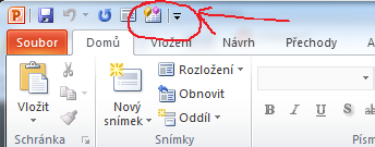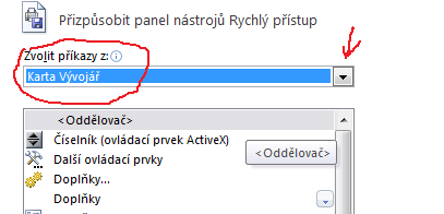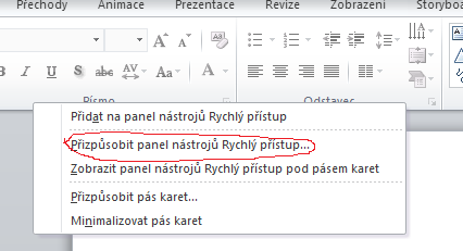 1.Krok - upraviť Panel nástrojov - rýchly prístup (pravé tlačítko na panel nástrojov)