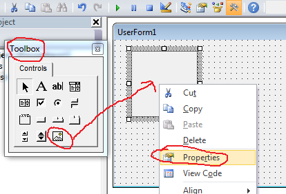 6. Krok - z ToolBoxu vyberieme Image, pravým tlačítkom vyvoláme menu a vyberieme Properties