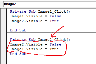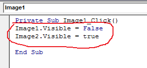 Tento program zabezpečí, že po kliknutí na druhý obrázok, tento obrázok zmizne a prvý obrázok sa objaví.
