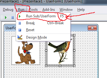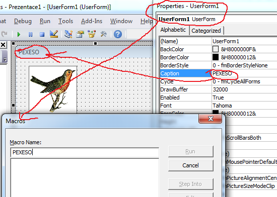 17. Krok. Neviem prečo to tak funguje, ale teraz, aby sme náš program mohli vyvolať z Wordu / Excelu / PowerPointu, musíme otvoriť okno Properties, kliknúť naň, aby bolo aktívne a stlačiť F5. Otvorí sa nasledovné okno, kde zadáme meno programu...